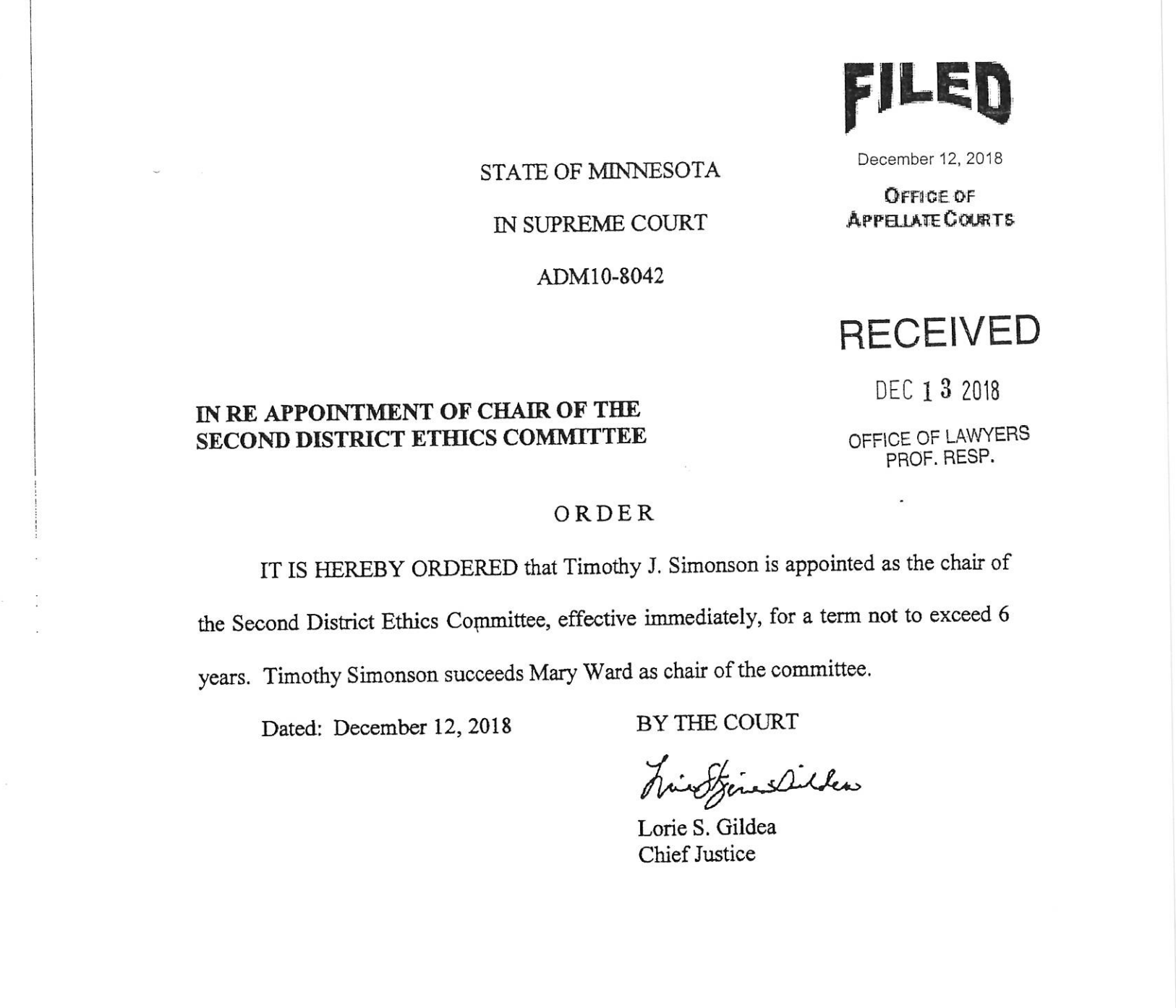 As Chair of the 2nd District Ethics Committee, for the next six (6) years, Tim is responsible for oversight of all complaints of lawyer misconduct in Ramsey County, assigned for investigation by the Office of Lawyers’ Professional Responsibility. Across the State, there are typically more than a thousand investigations opened each year, resulting from complaints of lawyer misconduct. Some of these investigations result in lawyer disbarment, suspension, probation, or reprimand.
